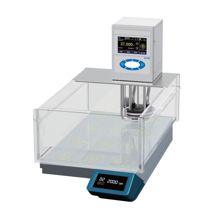 將帶有磁子的樣品(液體)放入恒溫循環(huán)浴槽中,通過浴槽底部多個磁力攪拌工位對樣品進(jìn)行充分的攪拌和混勻,可完成對樣品在某個特定溫度下的相關(guān)合成反應(yīng),廣泛應(yīng)用于石油,化工,化學(xué),生物和醫(yī)藥等行業(yè)。