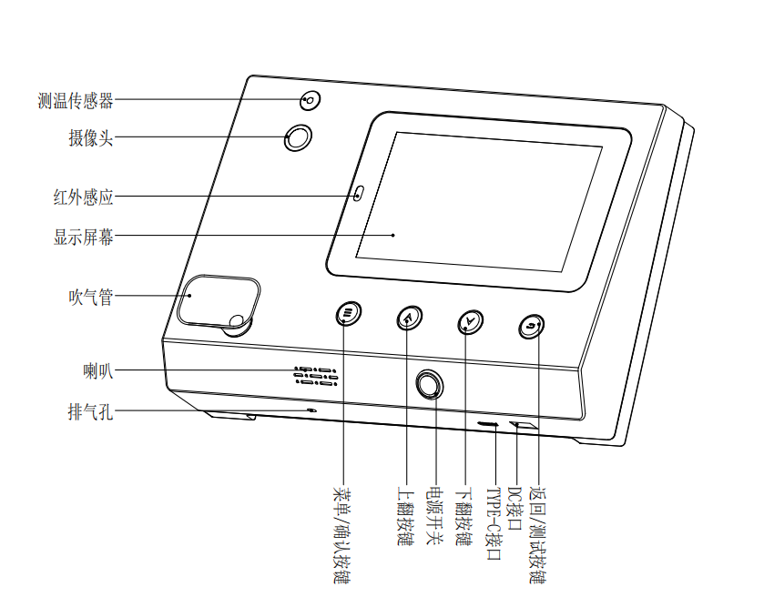 ② 當(dāng)人體接近設(shè)備時(shí),紅外感應(yīng)到物體后啟動(dòng)檢測(cè)功能(也可通過短按“返回/測(cè)試按  鍵”啟動(dòng)檢測(cè)功能)