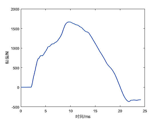在重質(zhì)混凝土樓板上測(cè)量的橡膠球的撞擊力波形