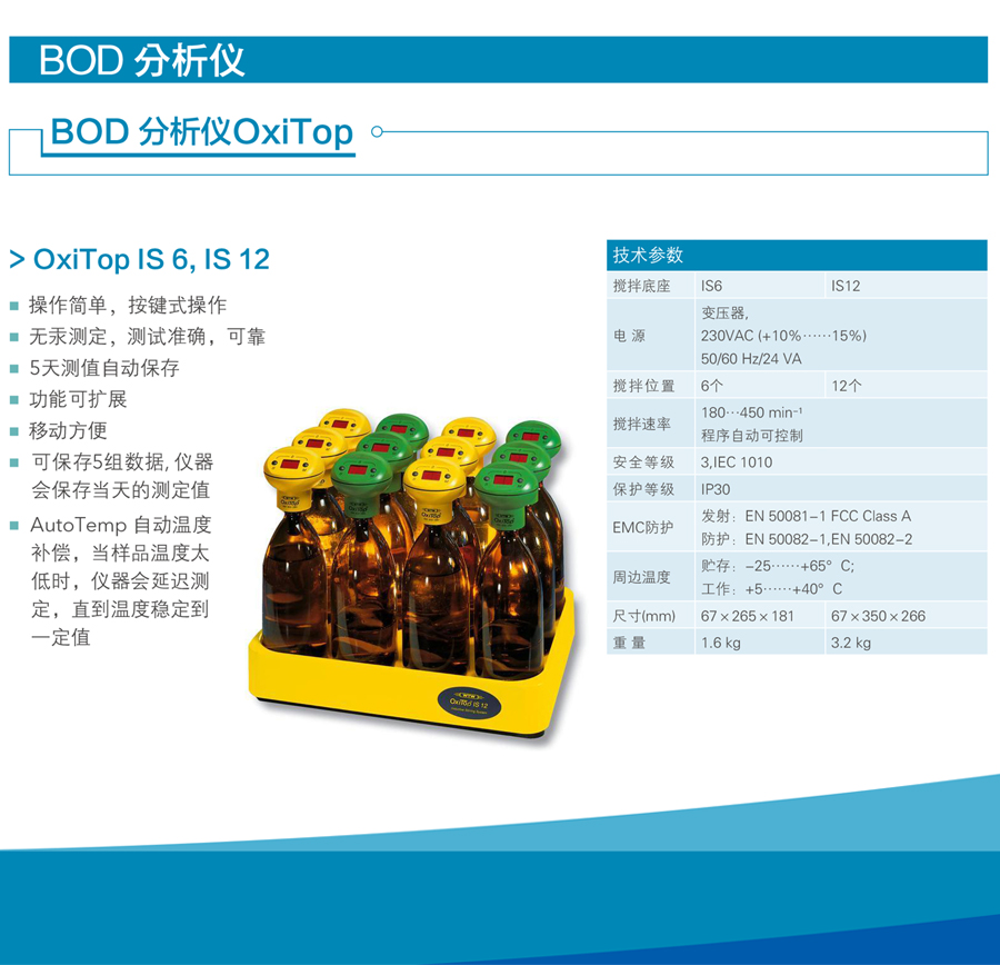 德國WTW OxiTop® IS 6/OxiTop® IS 12實(shí)驗(yàn)室BOD分析儀簡介