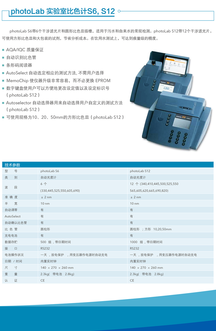 德國(guó)WTW photoLab S6/12 濾色光度計(jì)產(chǎn)品簡(jiǎn)介