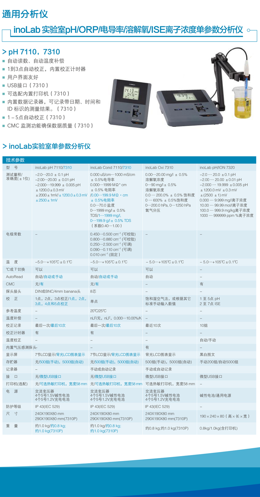 inoLab® PH7110 Set2,配SenTix41電極,標(biāo)液,支架,USB電纜等 |