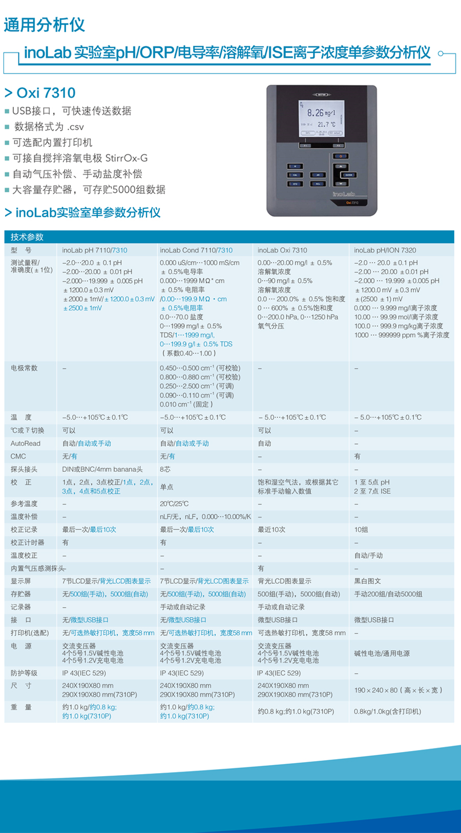 inoLab® Oxi 7310 實(shí)驗(yàn)室專業(yè)溶解氧測(cè)定儀,僅主機(jī),含電源適配器,支架和操作手冊(cè),軟件和USB電纜