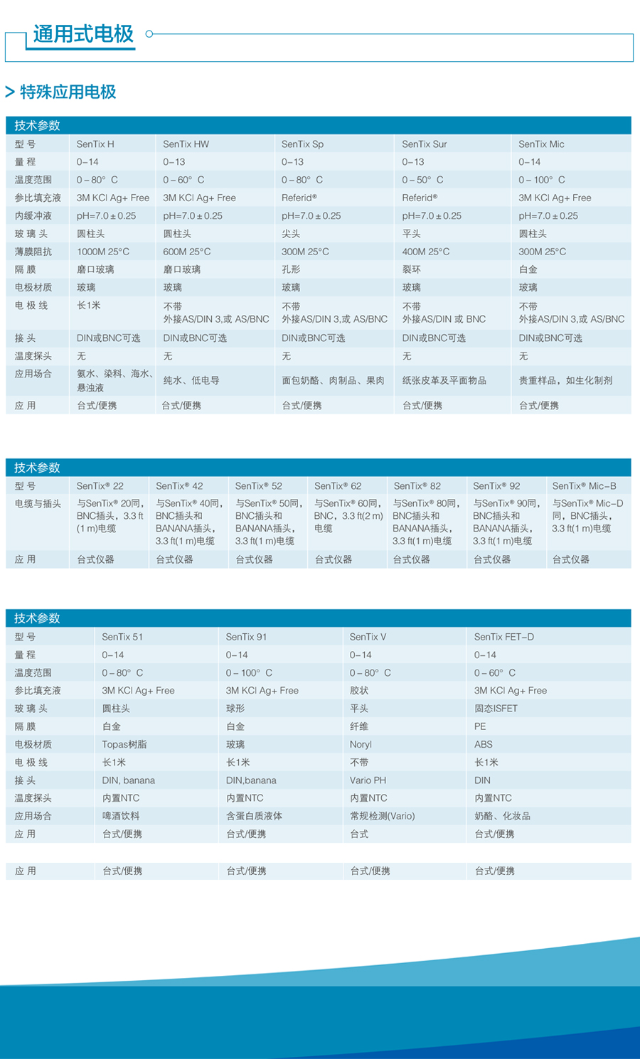 型    號 SenTix H SenTix HW SenTix Sp SenTix Sur SenTix Mic SenTix V SenTix FET