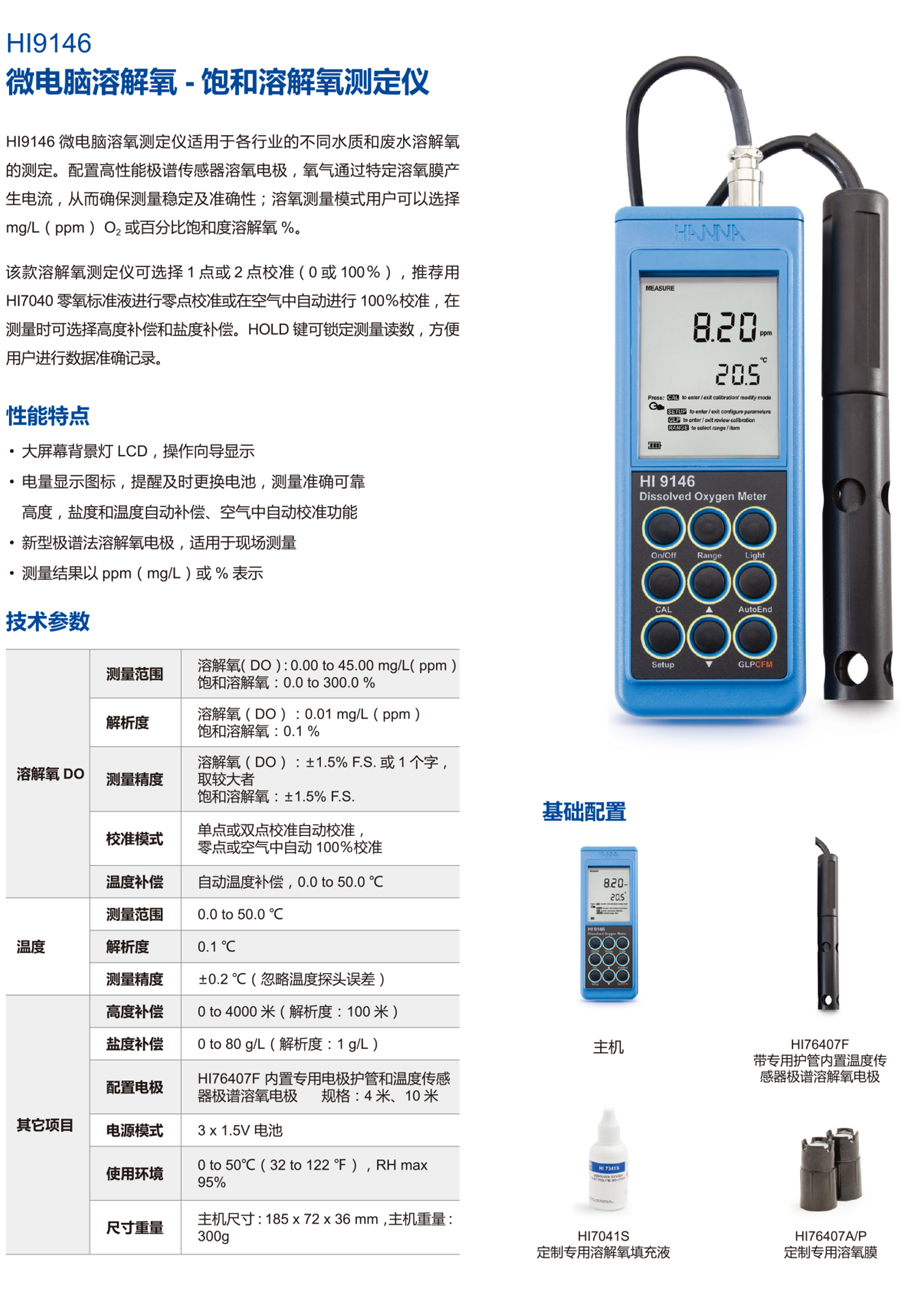 產(chǎn)品名稱:哈納 HI9146 便攜DO-溶解氧測定儀