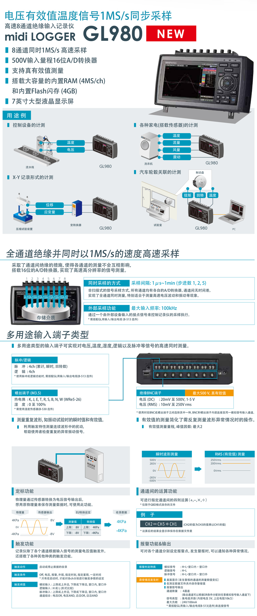 產品名稱:日本圖技 GL980系列數(shù)據(jù)記錄儀