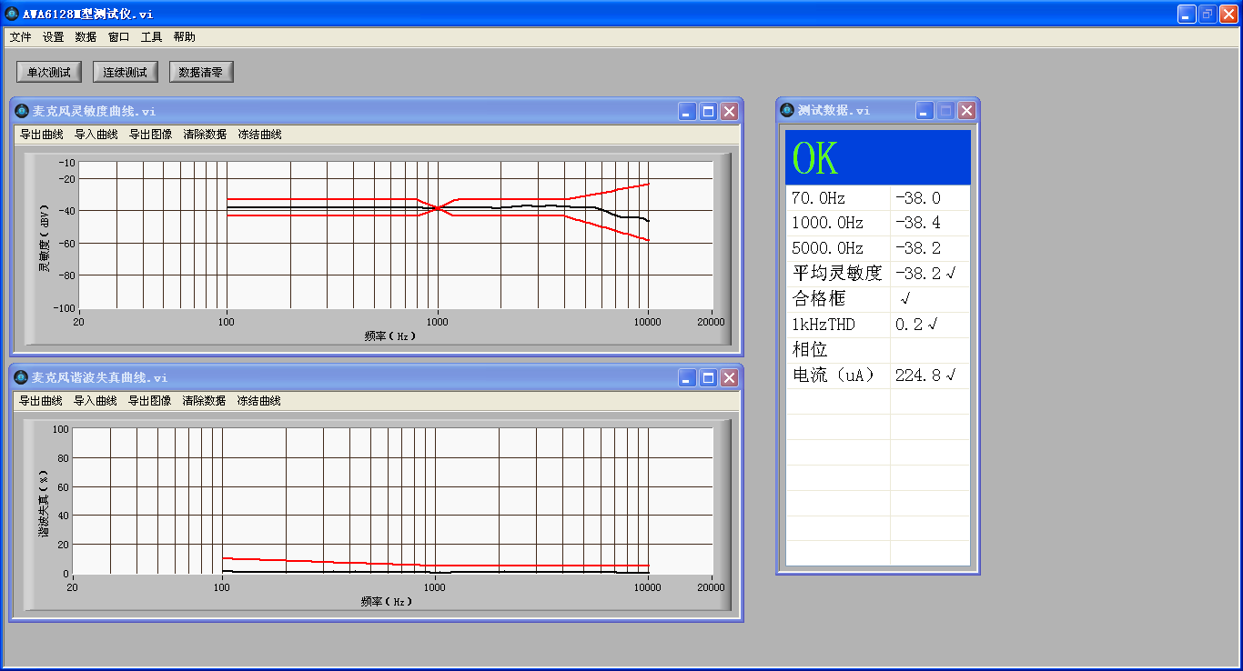 AWA6128M 型麥克風(fēng)測(cè)試儀執(zhí)行《GB/T 12060.4 聲系統(tǒng)設(shè)備傳聲器測(cè)量方法》和《IEC 60268-4:2004傳聲器》等標(biāo)準(zhǔn)。該儀器由專用測(cè)量分析電路, PC機(jī)和專用的分析軟件組成,功能強(qiáng)大,操作便捷。具有高效、強(qiáng)大的分析和處理能力。能快速地完成電聲產(chǎn)品麥克風(fēng)的測(cè)試,基于生產(chǎn)線和質(zhì)量控(QC)、操作簡(jiǎn)易的要求而開(kāi)發(fā)的測(cè)試系統(tǒng)。大大降低了電聲測(cè)試的成本,超越了傳統(tǒng)儀器的功能限制,可以廣泛應(yīng)用于生產(chǎn)線,實(shí)驗(yàn)室等消費(fèi)類電子的電聲測(cè)試領(lǐng)域。儀器可以同時(shí)測(cè)量麥克風(fēng)的靈敏度、電流、諧波失真等參數(shù)。根據(jù)設(shè)定的門限判斷麥克風(fēng)合格品或不合格品。測(cè)試結(jié)束后,簡(jiǎn)潔直觀的顯示出 PASS/FAIL,極大的提高了測(cè)試效率。
