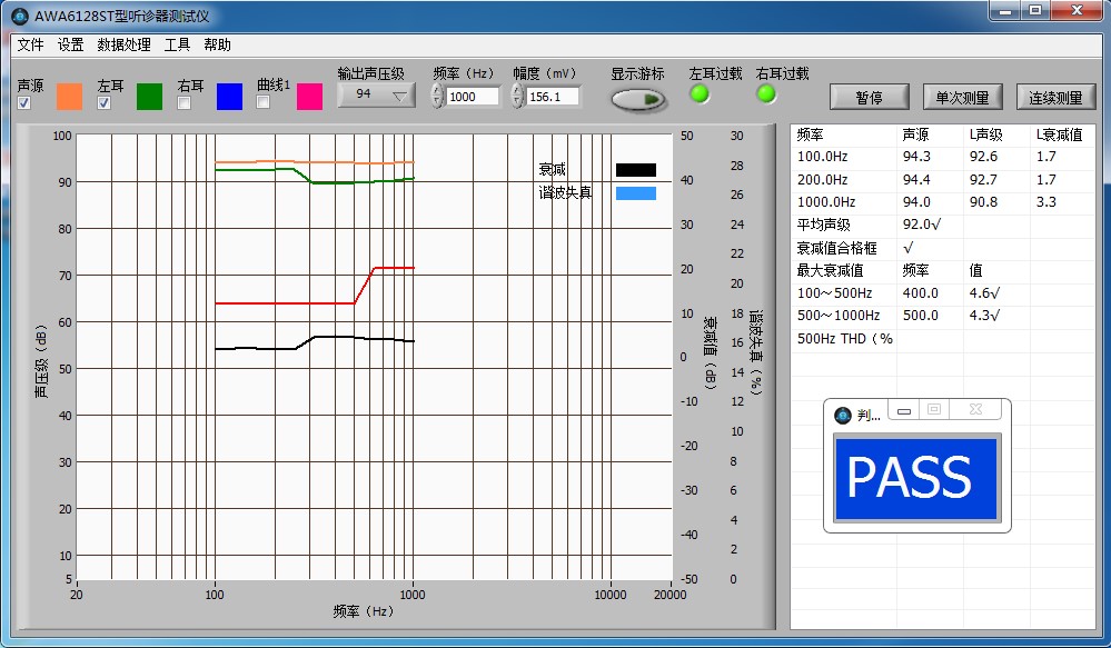 在設(shè)計、生產(chǎn)聽診器過程中,迫切需要一種能快速準(zhǔn)確地檢測出聽診器的傳聲特性的測量儀器。AWA6128ST型聽診器測試儀在此背景下應(yīng)運(yùn)而生。AWA6128ST型聽診器測試儀執(zhí)行《YY 91035-1999 聽診器》和《YY 91077-1999聽診器傳聲特性測試方法》等標(biāo)準(zhǔn),專門用于聽診器傳聲特性測試。軟件能將測試聲源聲壓級、聽診器傳聲輸出聲壓級、兩者衰減值和合格框以曲線顯示,非常直觀。