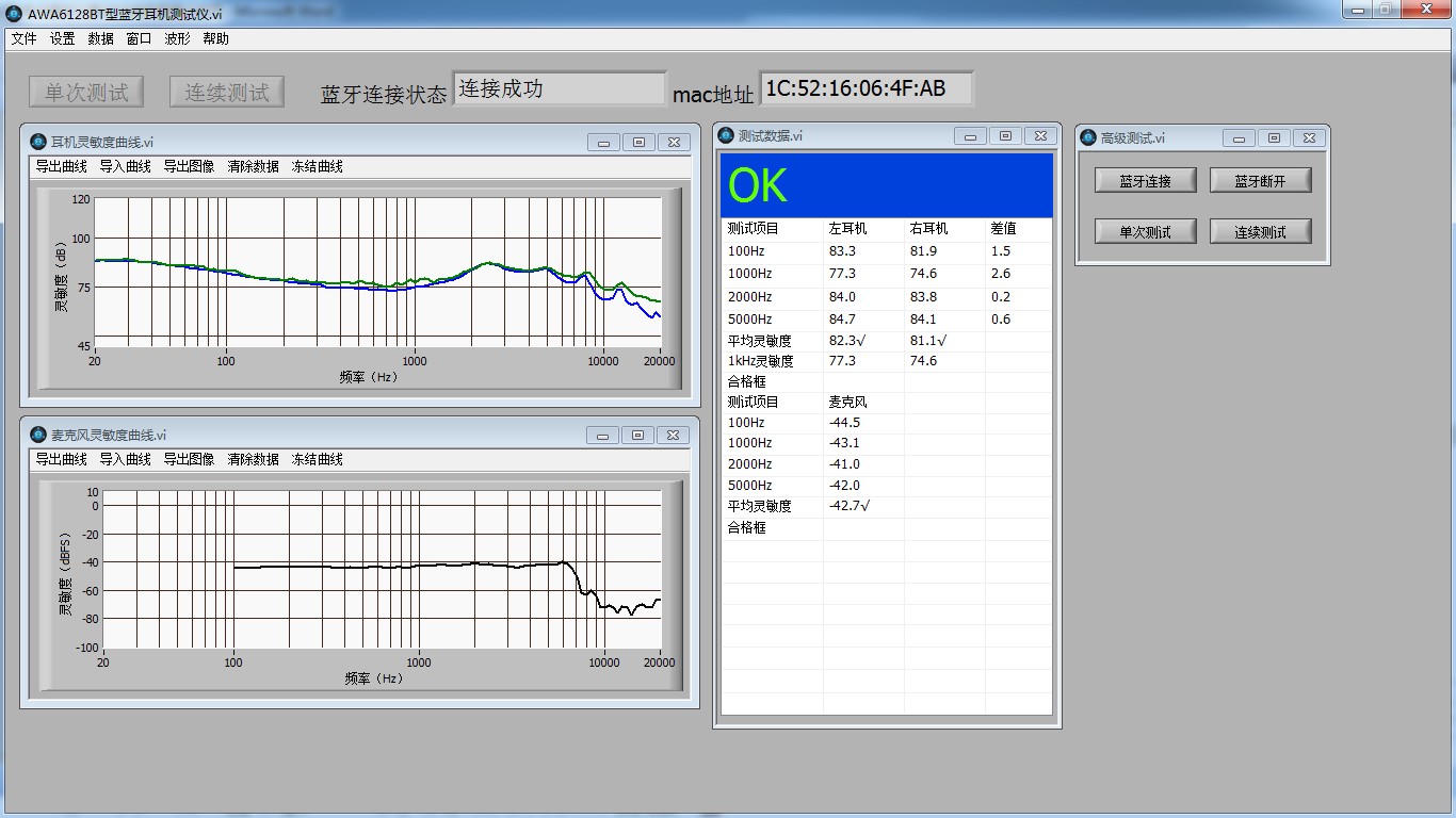 2、藍(lán)牙麥克風(fēng)測試:頻率范圍:20 Hz20k Hz