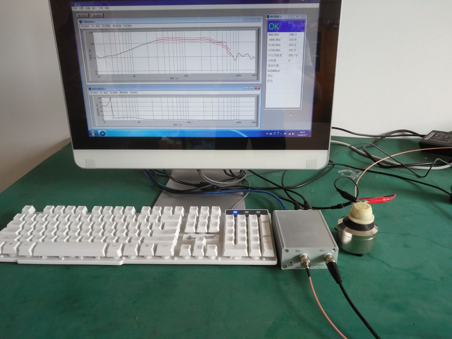 該儀器主要用于測試耳機(jī)或者受話器的電聲指標(biāo)。儀器由專用測量分析電路, PC 機(jī)和專用的分析軟件組成,功能強(qiáng)大,操作便捷。采集模塊可選用USB 聲卡或主板集成聲卡。充分降低成本投入和維護(hù)費(fèi)用,具有高效、強(qiáng)大的分析和處理能力。