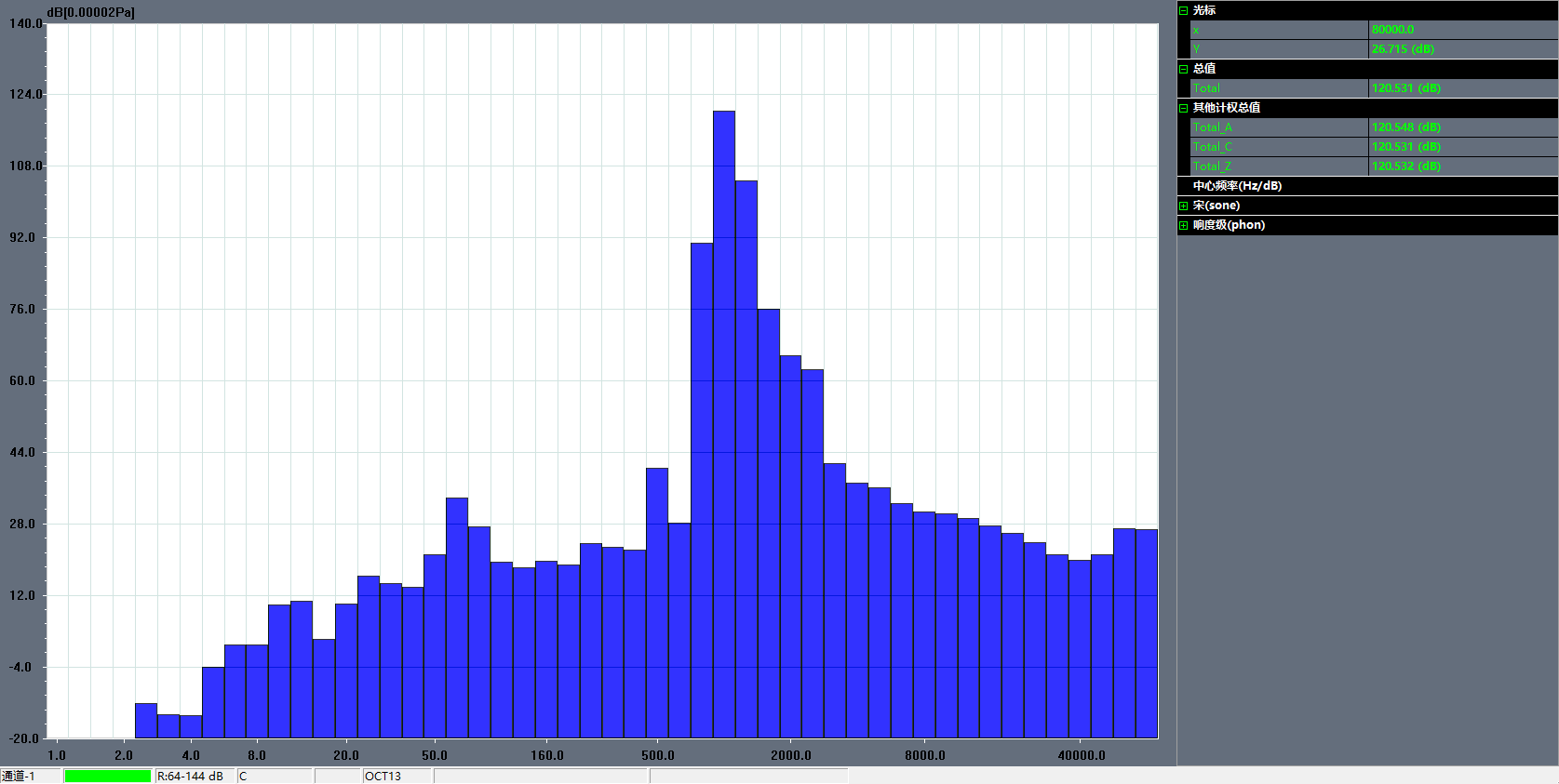 噪聲測(cè)量同時(shí)提供A、C、Z計(jì)權(quán)頻譜值及總值