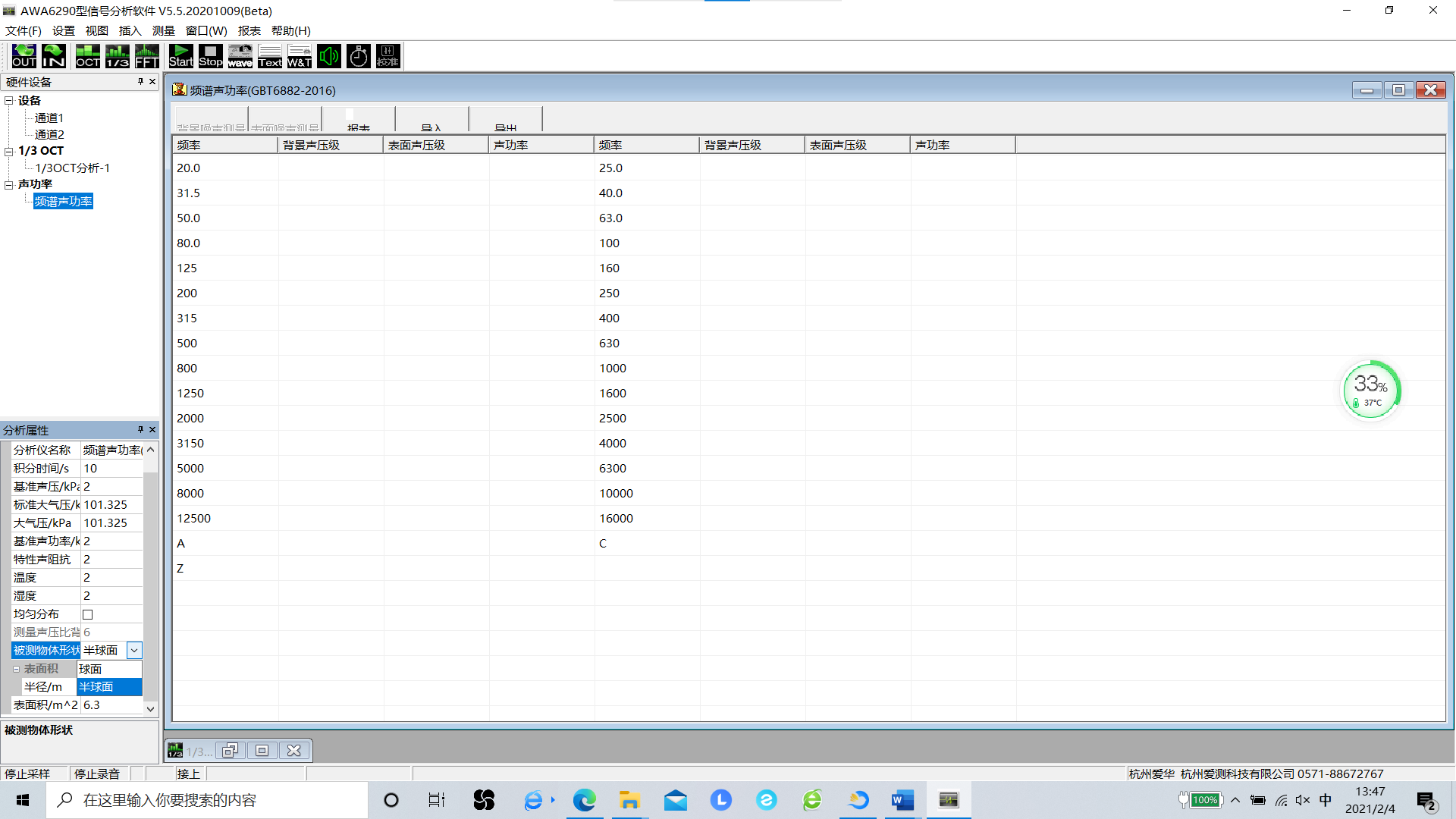 1/3 OCT頻帶聲功率級(jí)及A,C,Z計(jì)權(quán)聲功率級(jí)同時(shí)測(cè)量