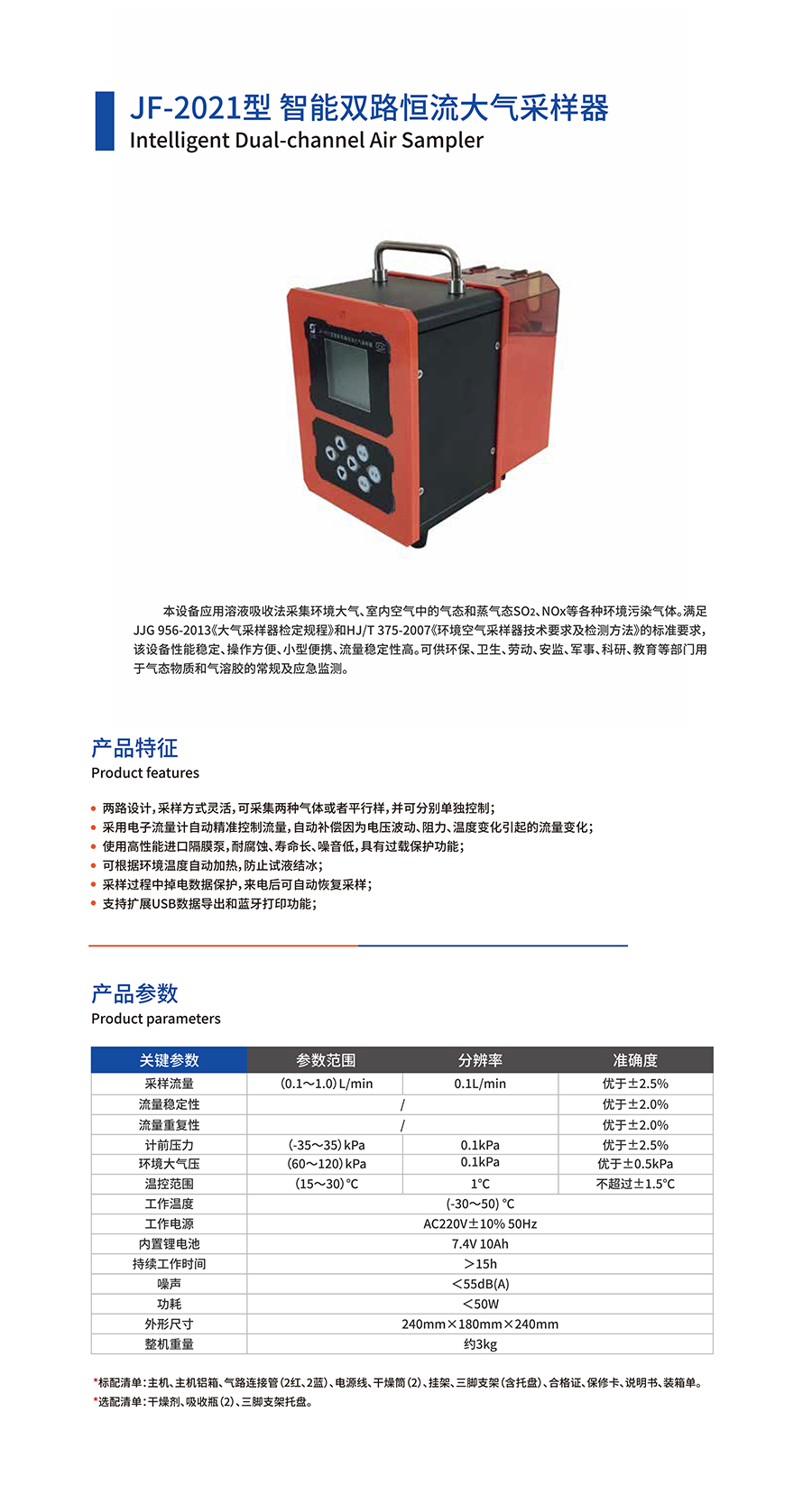 產(chǎn)品名稱:JF-2021型智能雙路恒流大氣采樣器