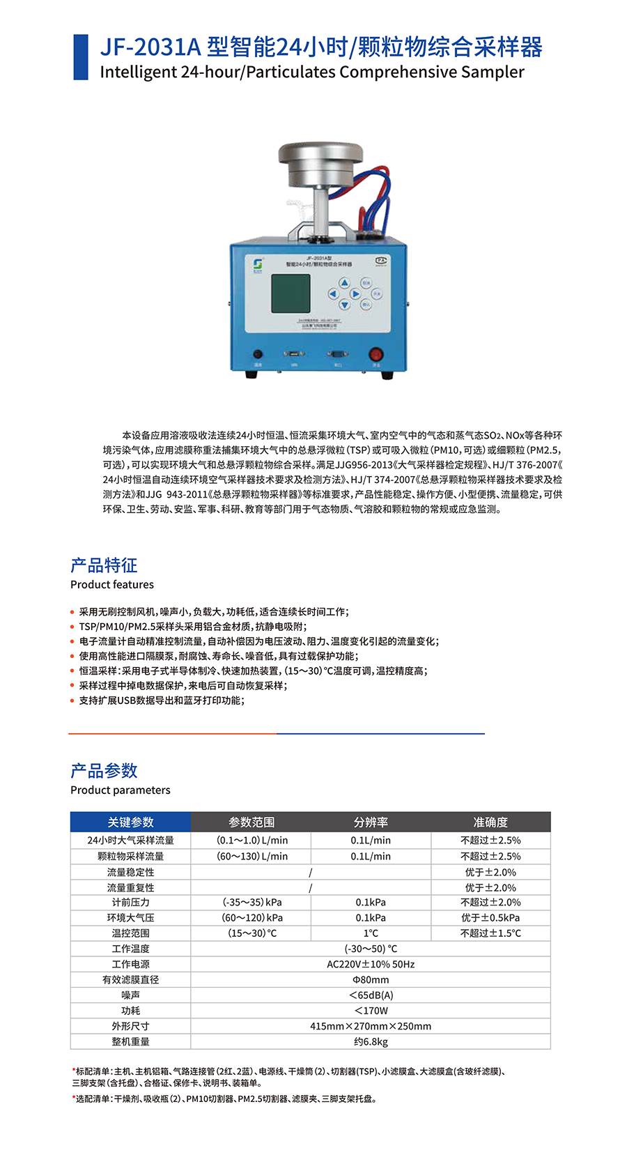 產(chǎn)品名稱:JF-2031A型智能24小時(shí)/顆粒物綜合采樣器