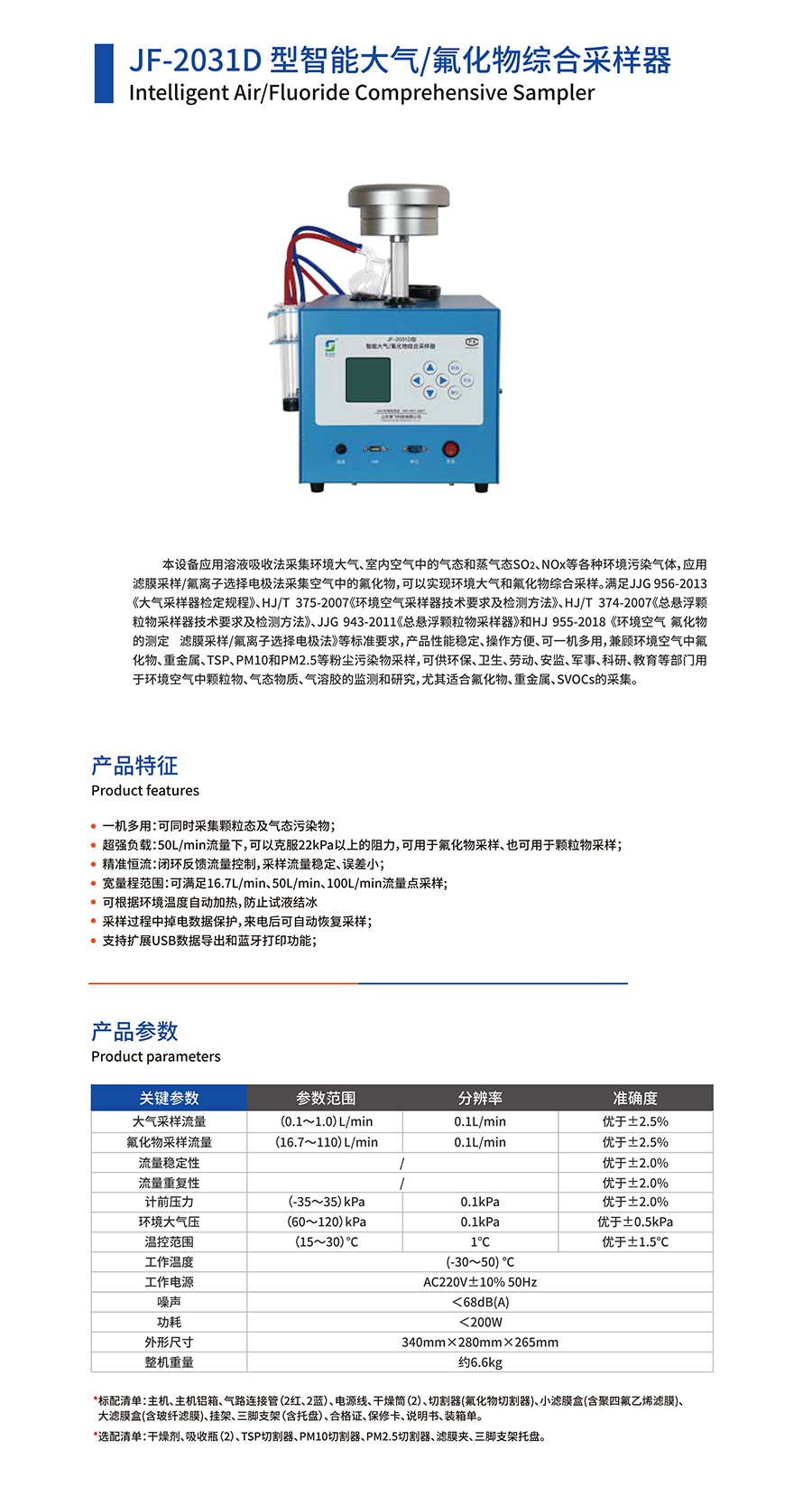 產(chǎn)品名稱:JF-2031D型智能大氣/氟化物綜合采樣器