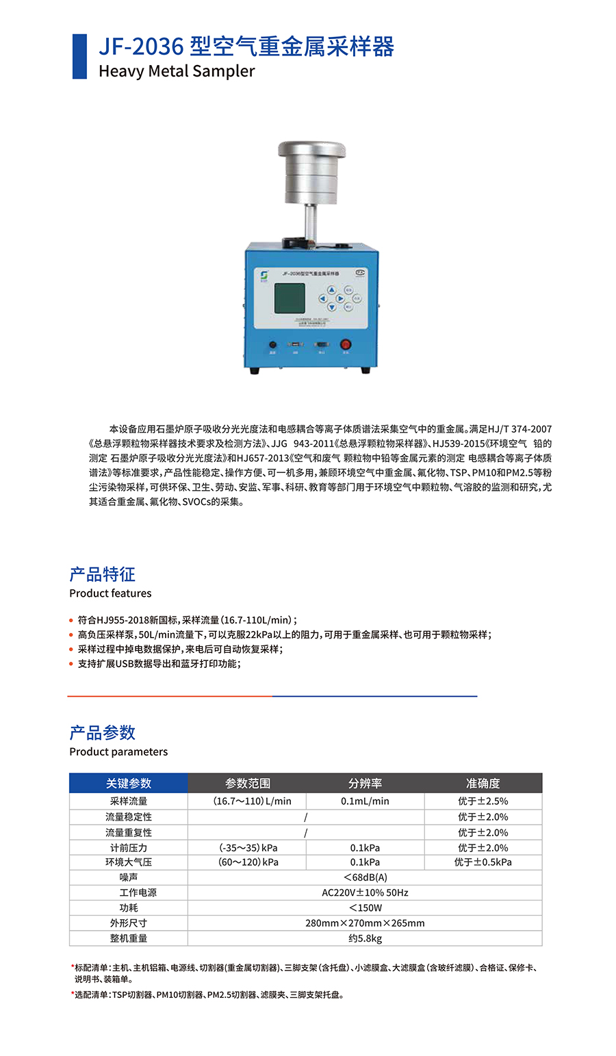 產(chǎn)品名稱(chēng):JF-2036型空氣重金屬采樣器