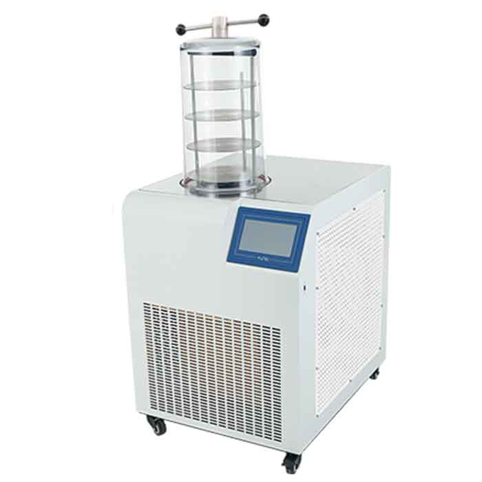 冷凍干燥機主要原理利用升華使物料脫水的一種低溫干燥設(shè)備,將含水物料冷凍成固體,在低溫低壓條件下利用水的升華性能,使物料低溫脫水而達到干燥的新型干燥手段,適用于生物研究、醫(yī)學(xué)制藥、化工、食品加工、大專院校等領(lǐng)域進行冷凍干燥、菌種保存等領(lǐng)域。臺式冷凍干燥機系列分為普通型、手動壓蓋型、多歧管型、壓蓋多歧管型等四種機型,主要原理利用升華使物料脫水的一種低溫干燥設(shè)備,將含水物料冷凍成固體,在低溫低壓條件下利用水的升華性能,使物料低溫脫水而達到干燥的新型干燥手段,適用于生物研究、醫(yī)學(xué)制藥、化工、食品加工、大專院校等領(lǐng)域進行冷凍干燥、菌種保存等領(lǐng)域。